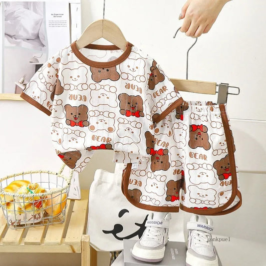 2PCS Summer Cotton Baby Children's Clothing Set for Boys and Girls T-shirt and Shorts Toddler Suit