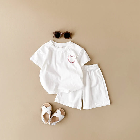INS Newborn Baby Clothes Set Girls Cotton Heart Shaped Letter Printing Summer T-shirt+shorts 2Pcs for 1-4Y Baby Boys Clothes