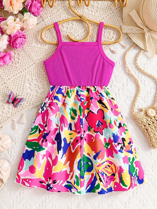 Kids Summer Dress Girls Fashion Cute Casual dress Pink sleeveless graffiti print Girls Summer outdoor vacation casual dress