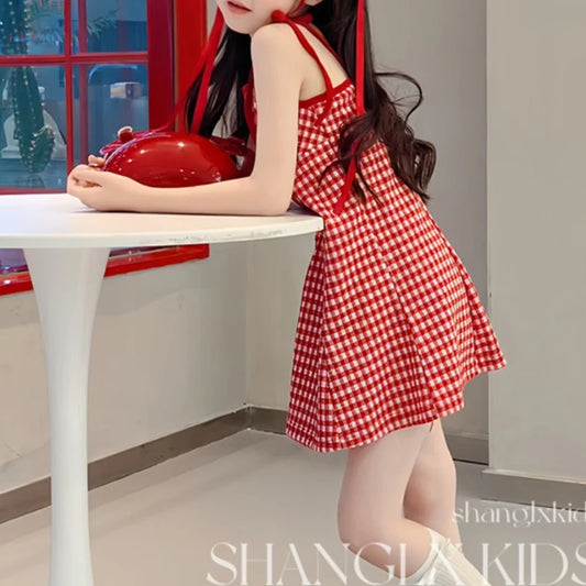 Children's Girl Suspender Puffy Dress Baby Girls' Sweet Princess Party Dress Bow-tie Design Casual Dresses